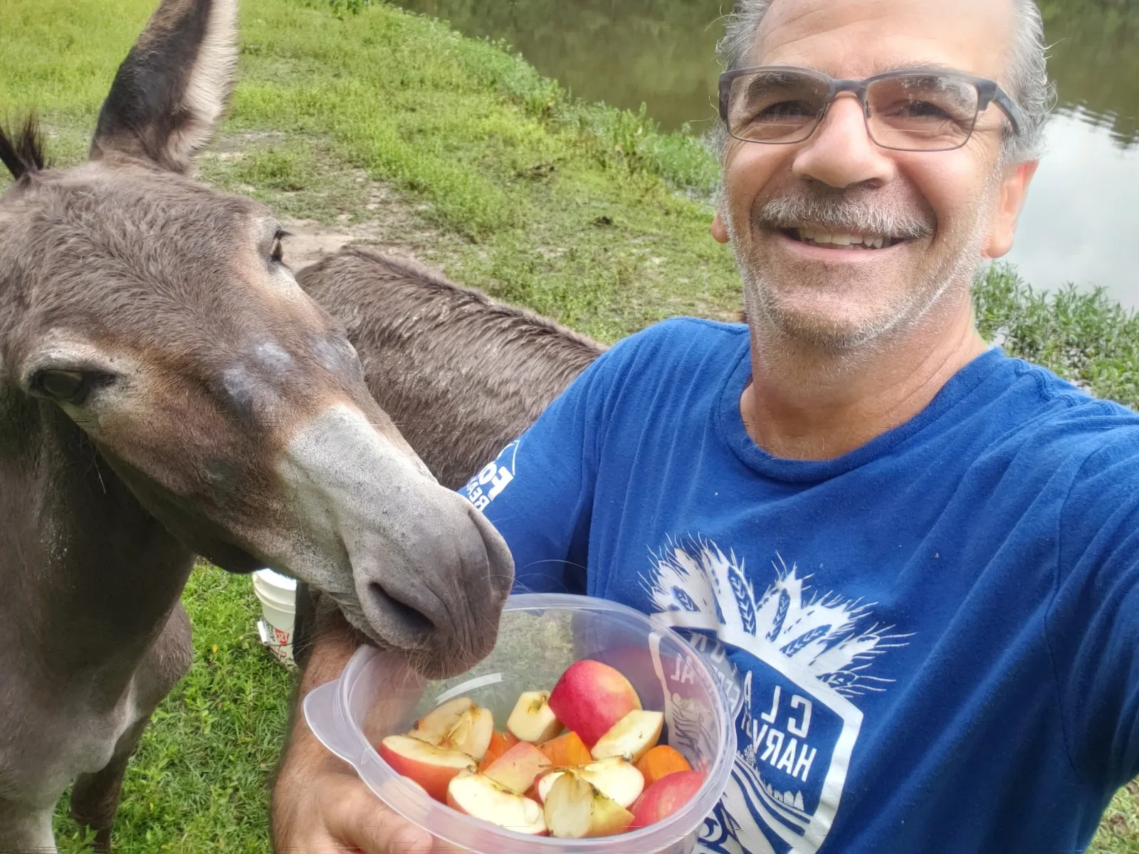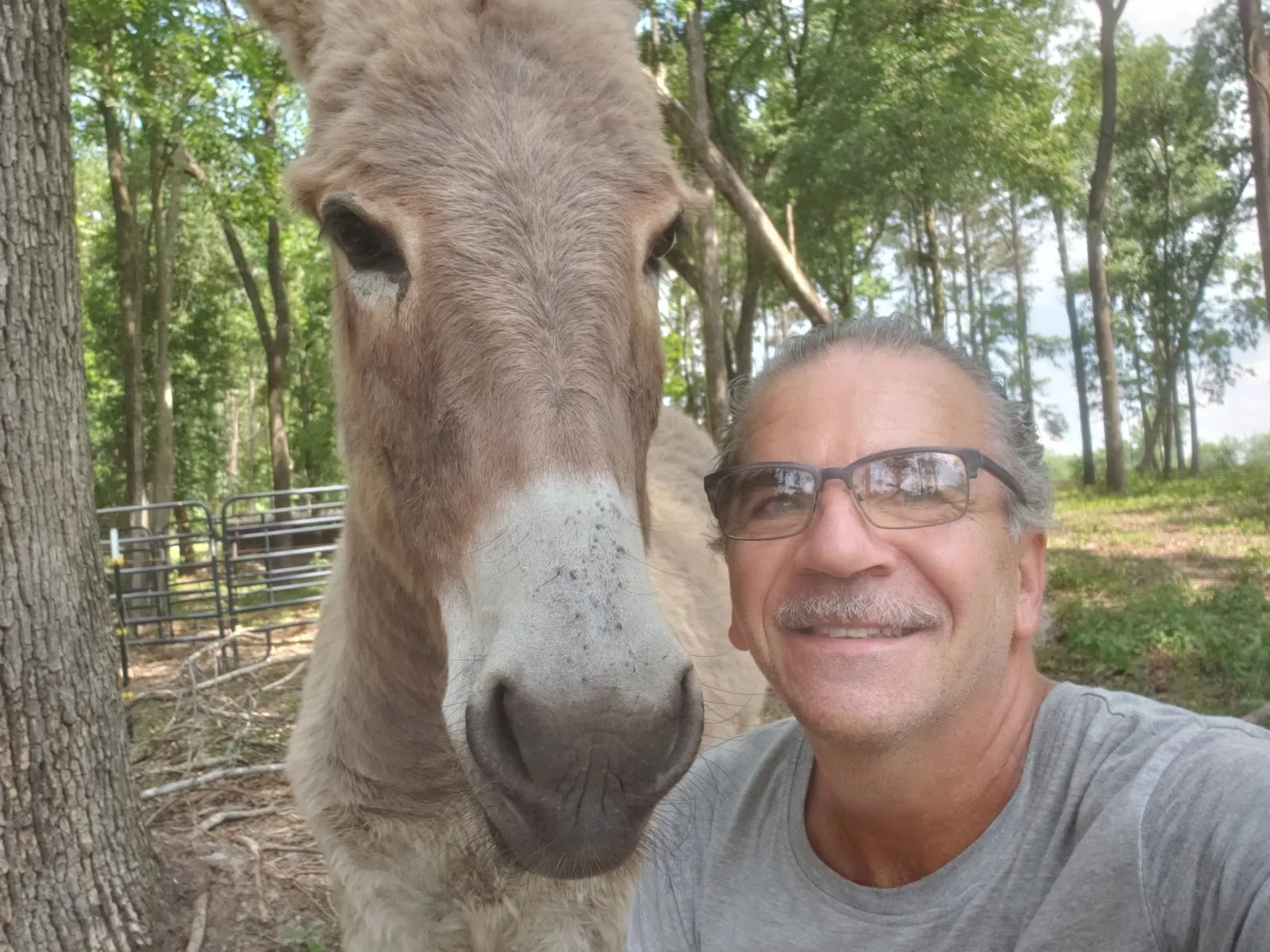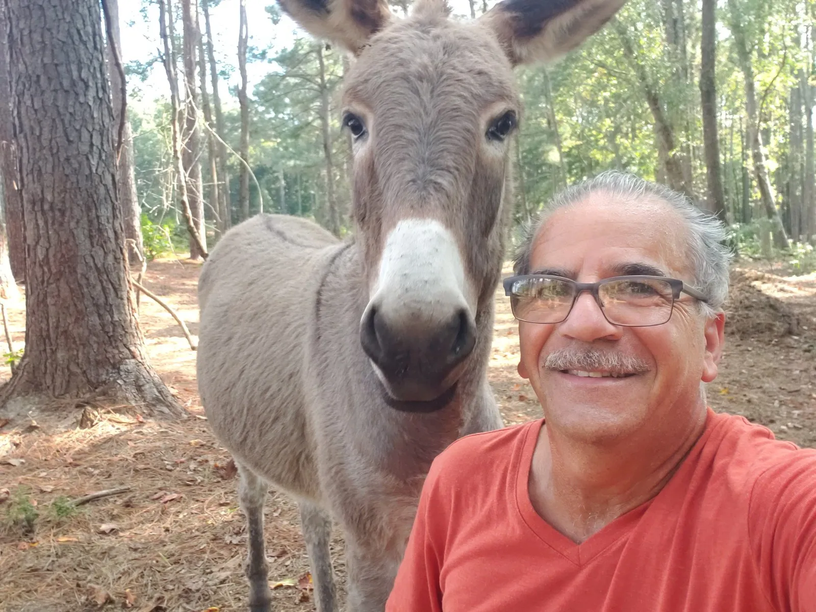 Through our Real Estate business my wife Michele had met a home builder by the name of Jerry Pounds from Jerry Pounds Construction. He also owns and operates an animal rescue in Benson called Old Cowboy Animal Rescue. Michele told me that he rescues dogs and cats. I told her, I would love to check out his rescue. So one day on July 2020 I decided to visit the animal rescue. When I got there, I fell in love with all the animals especially the donkeys and the goats.